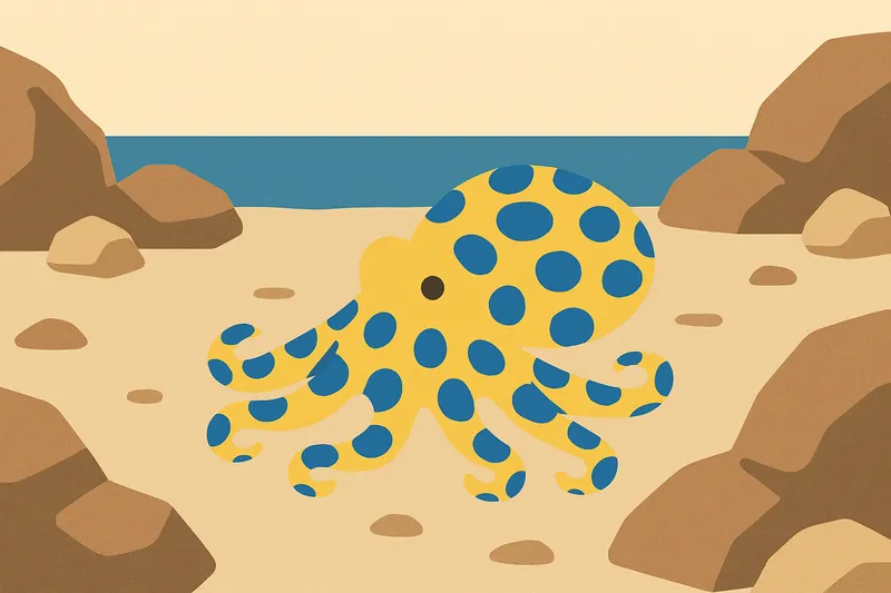 近年、温暖化の影響で関東以南の沿岸でも見られるようになったヒョウモンダコ。体長10cmほどの小さなタコですが、刺激を受けると鮮やかな青色のリング模様(ヒョウ柄)が浮かび上がります。これは警告色で、唾液にフグと同じ猛毒テトロドトキシンを持っています。噛まれると呼吸麻痺を起こし死に至る可能性があります。可愛らしくても、絶対に見つけても触ってはいけません。