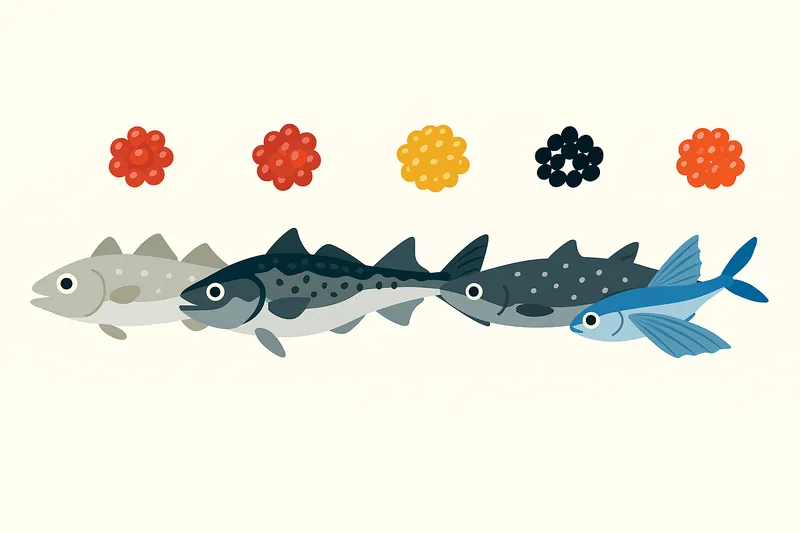 魚卵の名前とその親の魚は、意外と一致していないものがあります。「たらこ(鱈子)」や「明太子」の親はスケトウダラです。「数の子」の親はニシン(鰊)で、語源は「カド(ニシンの別名)の子」が訛ったものです。「キャビア」はチョウザメの卵、「とびっこ」はトビウオの卵です。それぞれの魚の生態や漁獲時期に合わせて、独特の塩蔵・加工文化が発達しました。
