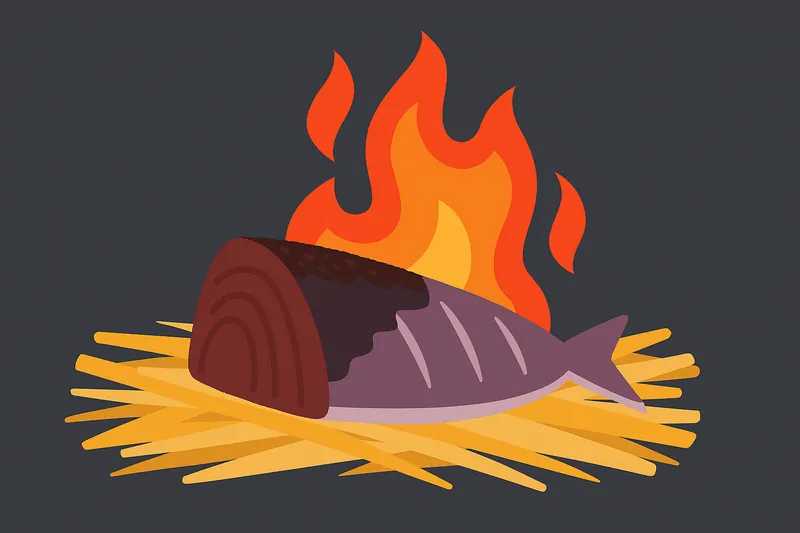 高知の名物「カツオのたたき」は、理にかなった調理法です。カツオは皮と身の間に脂や旨味がある一方、皮目が硬く生臭さも感じやすい魚です。そこで、皮付きのまま藁(わら)の強い火力で一気に表面だけを炙ることで、皮を柔らかくして臭みを消し、香ばしい風味を加えます。中はレアな状態のまま、薬味をたっぷり乗せて食べることで、カツオの濃厚な味をさっぱりと楽しむことができます。
