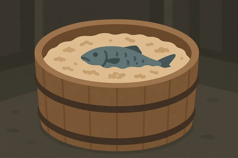 江戸時代以前の寿司(なれずし)は、現在の握り寿司とは全く異なるものでした。魚を塩とご飯に漬け込み、数ヶ月から数年かけて乳酸発酵させて保存するための食品だったのです。食べる際にはドロドロに発酵して酸っぱくなったご飯は捨てて、魚だけを食べていました。ご飯も一緒に食べるようになったのは、発酵期間を短くした「箱寿司」などが登場してからのことです。