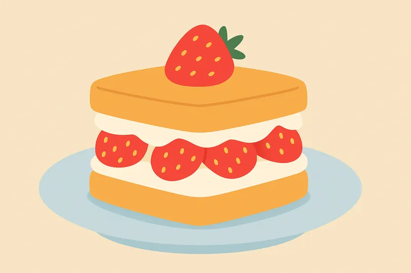 ショートケーキの「ショート(short)」は、長さが短いという意味ではなく、「サクサクした」「崩れやすい」という意味です。お菓子作りに使う油脂「ショートニング」と同じ語源です。もともと欧米のショートケーキは、ビスケットのようなサクサクした生地にクリームを挟んだものでした。日本のスポンジケーキ形式は、不二家が日本人好みにアレンジしたものです。