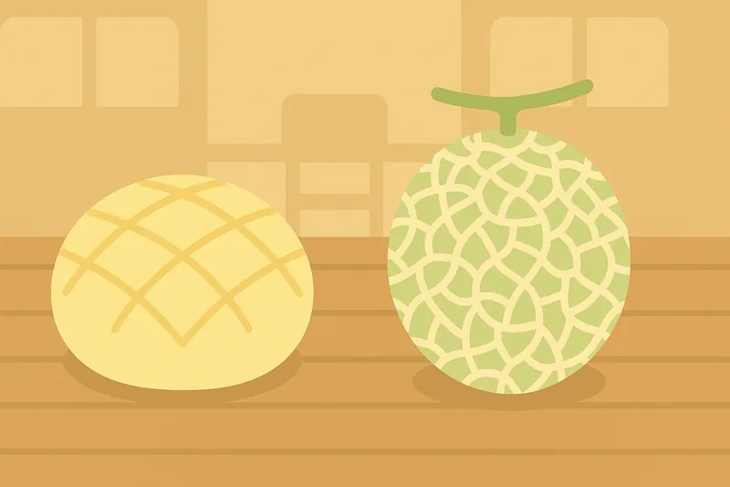 メロンパンという名前は、表面のビスケット生地のひび割れや格子模様が「マスクメロン」の皮に似ていることに由来します。当初はメロン果汁などは一切入っておらず、単に形が似ているだけのパンでした。ちなみに、関西の一部ではラグビーボール型のパンを「メロンパン」と呼び、丸い形の方を「サンライズ」と呼ぶ独自の文化が残っている地域もあります。