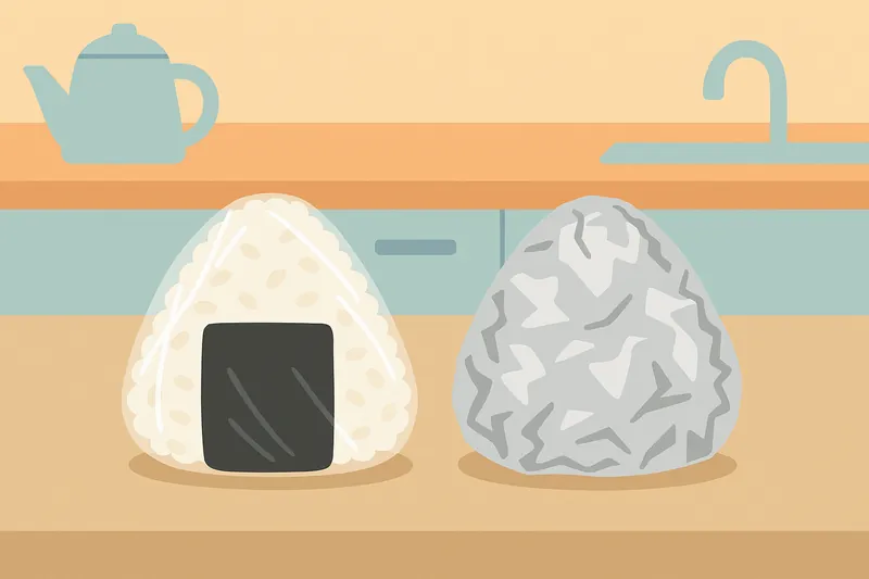 おにぎりを包む時、ラップを使う人が多いですが、美味しさを保つなら「アルミホイル」がおすすめです。ラップは密閉性が高すぎて水分がこもり、ご飯がベチャッとしがちですが、アルミホイルはくしゃくしゃにした隙間から適度に湿気が逃げるため、ご飯の粒立ちが保たれます。また、遮光性があるため、日光による傷みも防いでくれます。