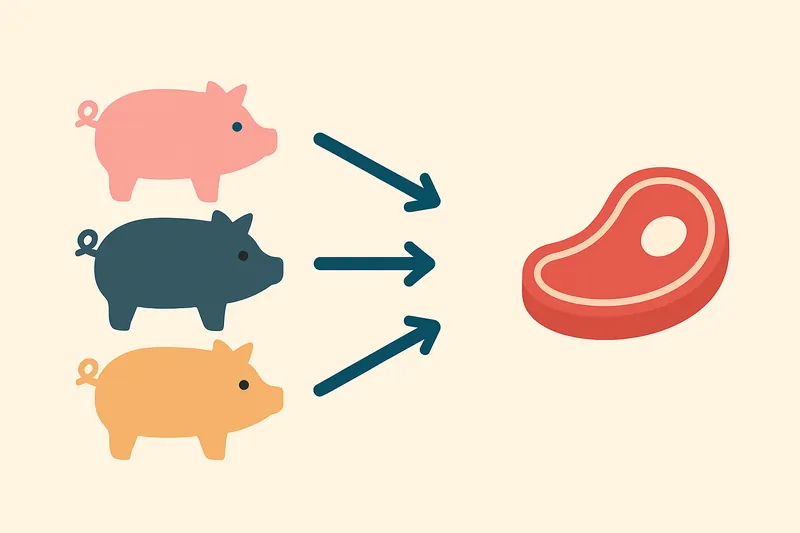 レストランやスーパーで高級そうに書かれている「三元豚(さんげんとん)」。これは特定の銘柄や地名ではなく、「3つの品種を掛け合わせた豚」という養豚用語です。一般的に、繁殖に優れた豚、肉質が良い豚、病気に強い豚など、それぞれの長所を持つ3種を掛け合わせて美味しい豚肉を作ります。日本で流通している豚肉のほとんどは、実はこの三元豚なのです。