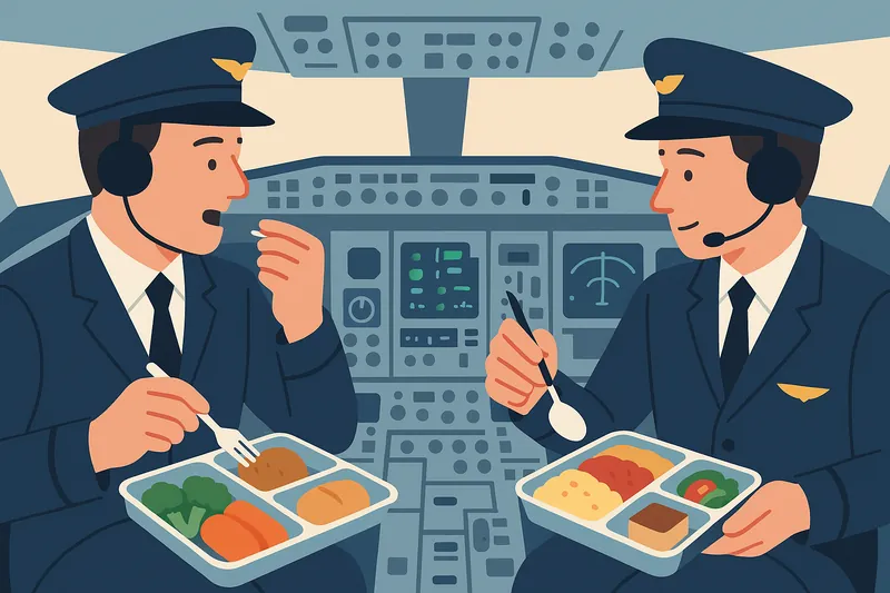 飛行機の操縦席に座る機長と副操縦士は、機内食を食べる際、必ず「異なるメニュー」を選ばなければならないというルールがあります(多くの航空会社で採用)。これは、万が一食中毒が起きた際、二人同時に体調を崩して操縦不能になるリスクを避けるためです。空の安全は、食事のメニュー選びから徹底して管理されているのです。