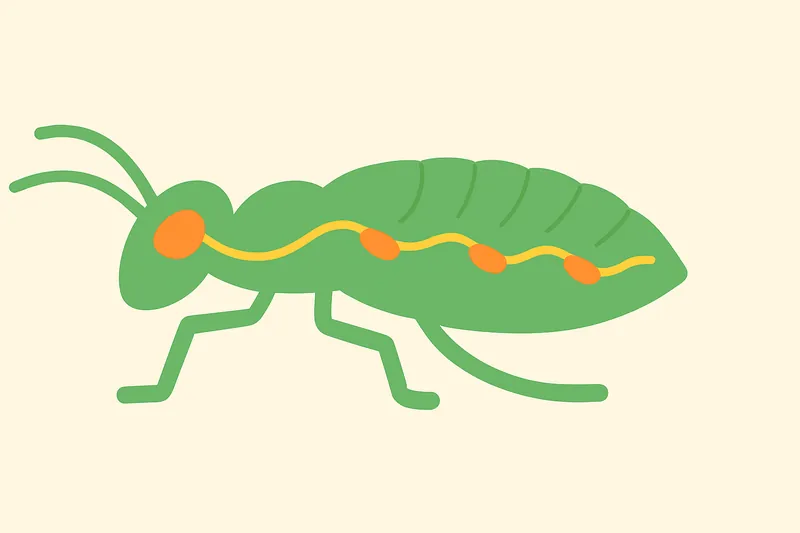 昆虫の中枢神経は、頭にある「脳」だけでなく、胸やお腹の各節にある「神経節」に分散しています。これを「分散脳」と呼びます。例えば、カマキリのオスは交尾中にメスに頭を食べられてしまうことがありますが、それでも交尾を続けることができます。これは胸や腹にある神経節が、頭からの指令なしでも「動く・交尾する」という基本動作を制御できるためです。頭を失っても即死せず、しばらく動き続けることができるのはこのためです。