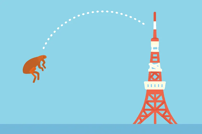 体長わずか2mm程度のノミですが、そのジャンプ力は30cm以上に達し、自身の体長の約150倍もの高さを飛び越えます。これは人間が東京タワーの展望台近くまで一跳びするようなものです。この驚異的な跳躍は筋肉の力だけではなく、脚の付け根にある「レジリン」というゴムのような弾性タンパク質にエネルギーを蓄え、それを一気に解放することで生み出されます。バネ仕掛けのカタパルトのような仕組みが、あの瞬発力を支えています。