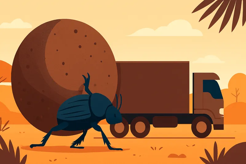 フンコロガシ(特にエンマコガネの仲間)は、昆虫界最強の力持ちとして知られています。ある研究では、自分の体重の1141倍もの重さを引っ張ることができると報告されました。これを体重70kgの人間に換算すると、約80トン(大型トレーラーや電車一両分に相当)の物体を一人で動かすことになります。彼らが愛するパートナーと子供のためにフンを運ぶ情熱は、物理的な限界すら超える驚異的なパワーを生み出しているのです。