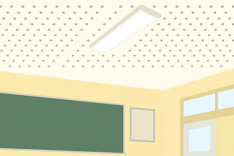 教室の天井を見上げると、無数の小さな穴が開いた板(ジプトーンなど)が使われていることがあります。これは、穴の中で音を乱反射させて吸収する「吸音材」です。コンクリートの校舎は音が反響しやすく、話し声がワンワンと響いてしまいます。この穴のおかげで不快な残響音が抑えられ、先生の説明や友達の発表が聞き取りやすい、落ち着いた学習環境が作られているのです。