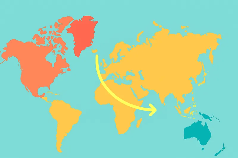 教室に貼ってある世界地図(メルカトル図法)を見て、「グリーンランドってオーストラリアより大きい!」と思ったことはありませんか?実はあれ、嘘なんです。球体の地球を無理やり平面の四角い紙にするため、高緯度(北極・南極に近い場所)ほど面積が引き伸ばされて描かれています。実際のグリーンランドはオーストラリアの3分の1以下。地図は用途によって「形」か「面積」のどちらかが犠牲になっているのです。