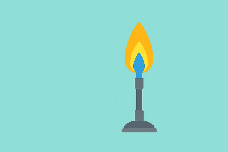理科の実験で使うガスバーナーの炎は、中心の青い「内炎」と、外側の「外炎」に分かれています。一番温度が高いのは、外炎の少し上の先端部分で、約1400℃にもなります。ここは酸素とガスが最も効率よく混ざり合って完全燃焼している場所です。逆に、内炎の中はまだガスが燃え切っていないため温度が低く、ここに試験管を入れてもなかなか温まりません。効率よく加熱するコツは、炎の先端を使うことです。