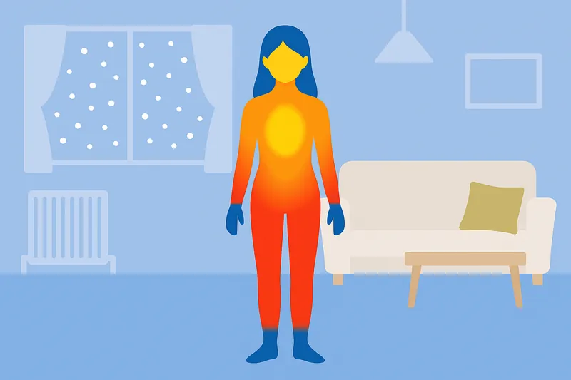 女性は筋肉量が少なく熱産生が苦手な一方で、月経周期や更年期によるホルモン変動が自律神経にダイレクトに影響を与えます。自律神経は血管の収縮・拡張をコントロールして体温調節を行っているため、バランスが乱れると「冷えているのに顔だけ熱い(ホットフラッシュ)」といった調節障害が起きやすくなります。外気温の変化にも敏感にならざるを得ない体の構造なのです。