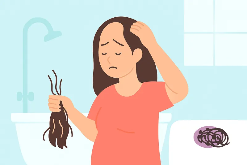 妊娠中はエストロゲンの濃度が高く、本来抜けるはずの髪が抜けずに成長を続けます。しかし出産後、ホルモンバランスが一気に元に戻ると、維持されていた髪が一斉に「休止期」に入り、ごっそりと抜け落ちます。これが産後脱毛です。排水溝が詰まるほどの抜け毛に恐怖を感じるママも多いですが、これは生理的な現象であり、半年から1年程度で必ず新しい髪が生えて元に戻るため、心配は無用です。