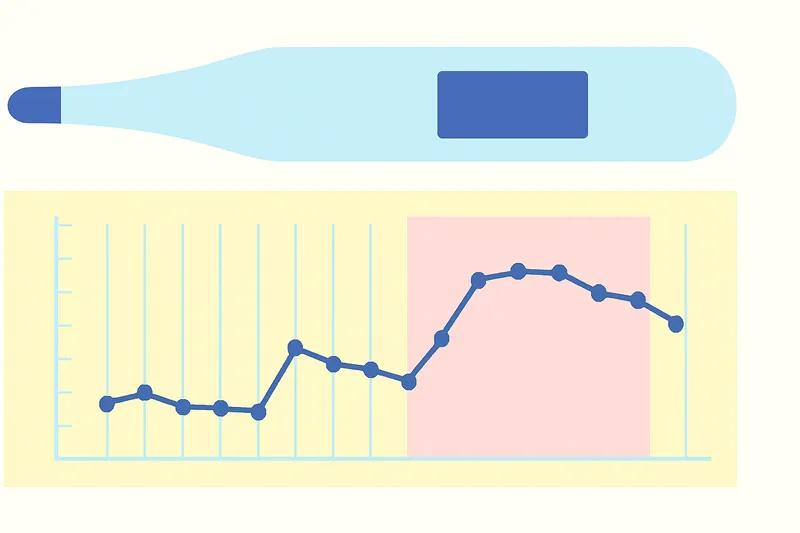 女性の体温は一定ではなく、ホルモンの影響で約0.3〜0.5℃の範囲で変動します。排卵後に分泌されるプロゲステロン(黄体ホルモン)が体温を上げるため、生理前は「高温期」となり微熱っぽさを感じることがあります。この基礎体温のリズムを記録することで、排卵日の予測だけでなく、ホルモンバランスの乱れや体調不良の予兆を早期に発見する手がかりになります。