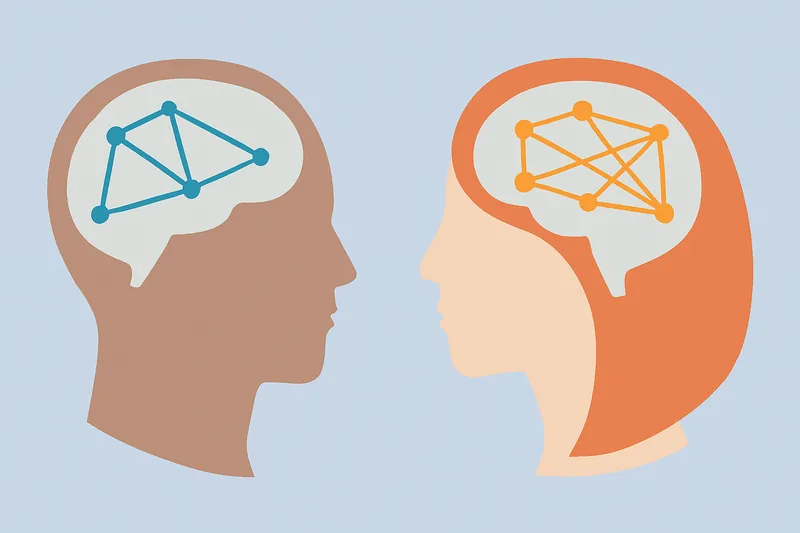 かつては「脳梁の太さが違う」と言われていましたが、最新の研究では「脳内のネットワーク接続のパターンが違う」という説が有力です。男性は脳内の連携が前後(知覚と行動)で強いのに対し、女性は左脳(論理・言語)と右脳(直感・感情)をつなぐ左右の連携が強い傾向があります。これにより、女性は複数の情報を同時に処理したり、言葉と感情を結びつけて表現したりすることに長けているとされます。